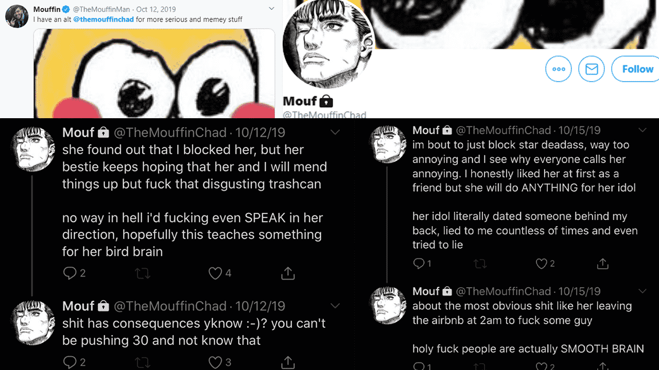 Khaleesi states that Mouffin had cheated on her when they were exclusive, and while this is rather a judgment of character, the subject of concern is the age of the girls he spoke to sexually. The two met in person at Twitchcon and stayed at an Airbnb with an unspecified amount of individuals. The post makes it sound as if Mouffin became intoxicated, and started to act aggressively.