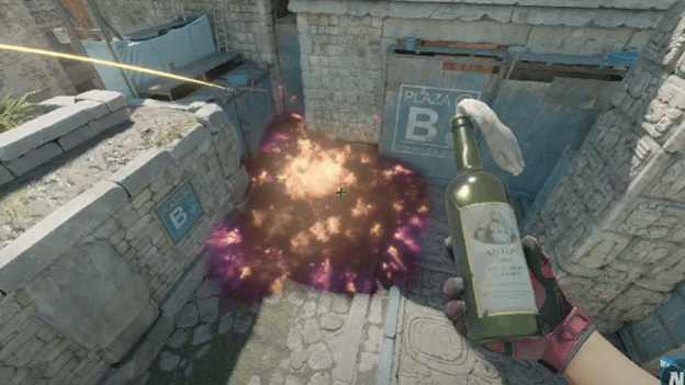 This Molotov covers the back area of Donut. Any player holding this area against Mid will most probably be hiding there. As a large area will be covered in flames, the player is forced to push out and be easily taken out. It is also common for a second player to hold the right-side angle to try and trade his teammate. So it is important to be prepared for that as well.