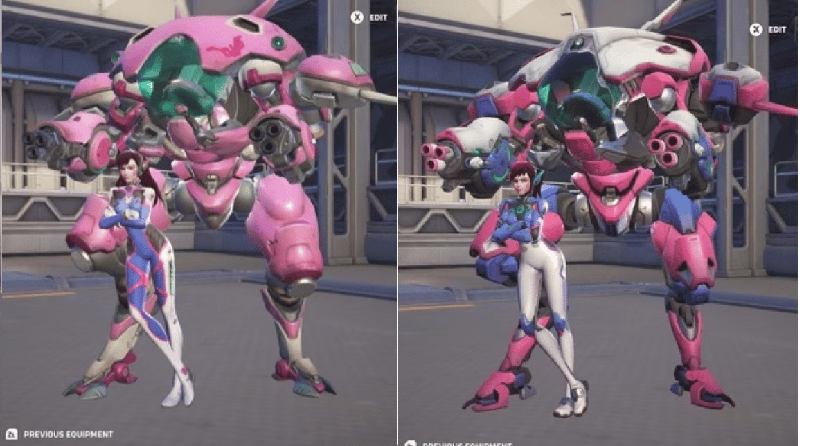 D.Va has had some of the fewest changes from game to game. It’s difficult to look at her overwatch 2 redesign and pinpoint why it has a separate skin slot. The mech and her suit have had some minor color changes. It feels more like just switching around colors than really going for something new, though.