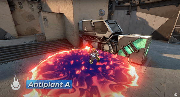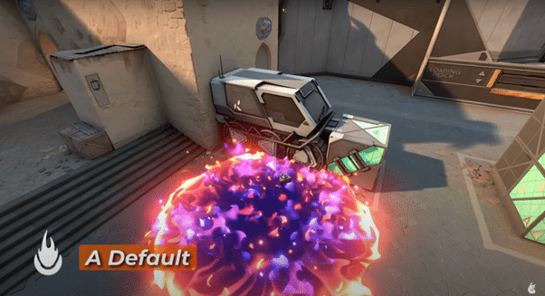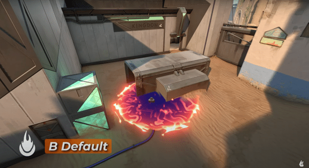 As important as it is to master the post-plant lineups for Brimstone and turn up the clutch factor in your favour, there are extra benefits to learning defensive lineups, which will cancel a spike plant on a given location. Our recommendation for this map is to learn to prevent the A default plant with your incendiary. The boxes’ plant spot on A is wall-bangable, so you’re better off not using your utility there.