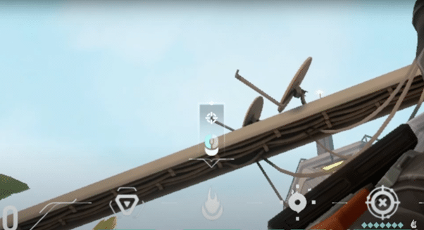 Step 2: Pay attention to the area (in the picture below) where the leftmost solar panel connects with the one in the middle. A red, almost rust-like texture in that spot must be lined up with your HUD in the following manner.