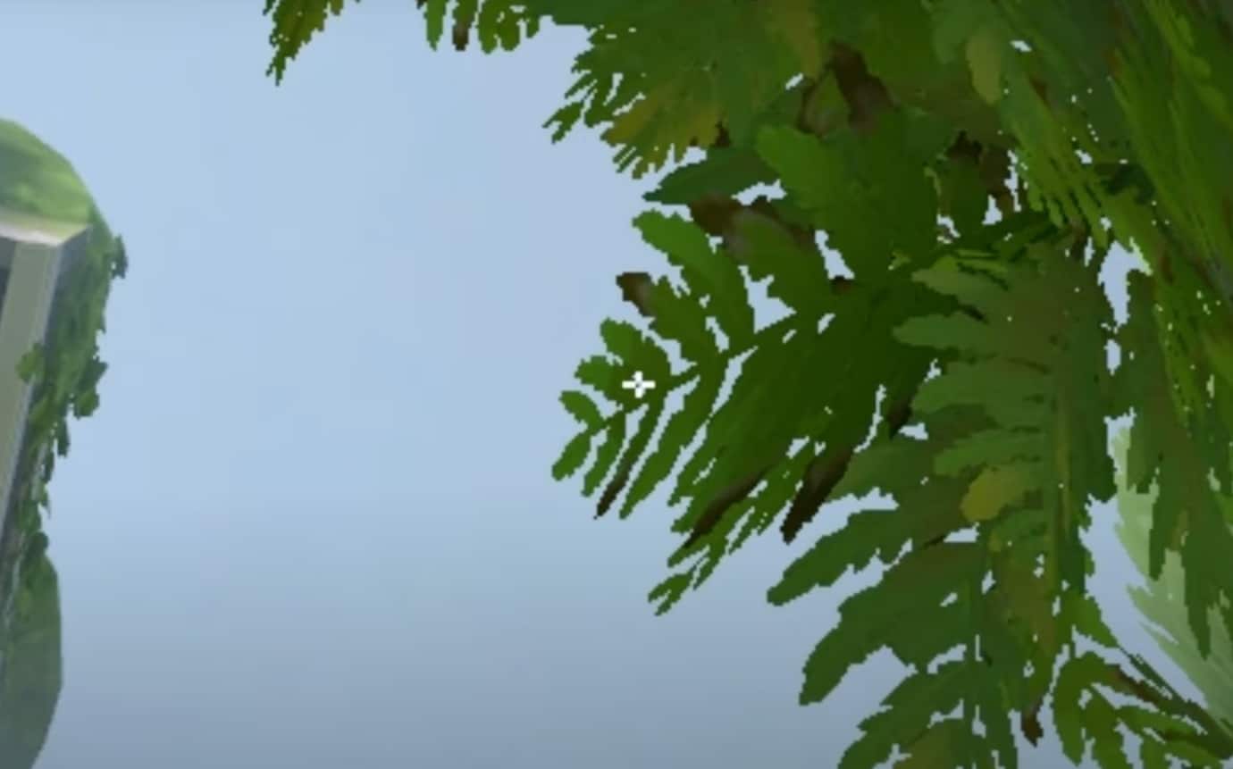 Step 2: Look straight above and aim at the middle of the second and third leaf, as pointed out below.