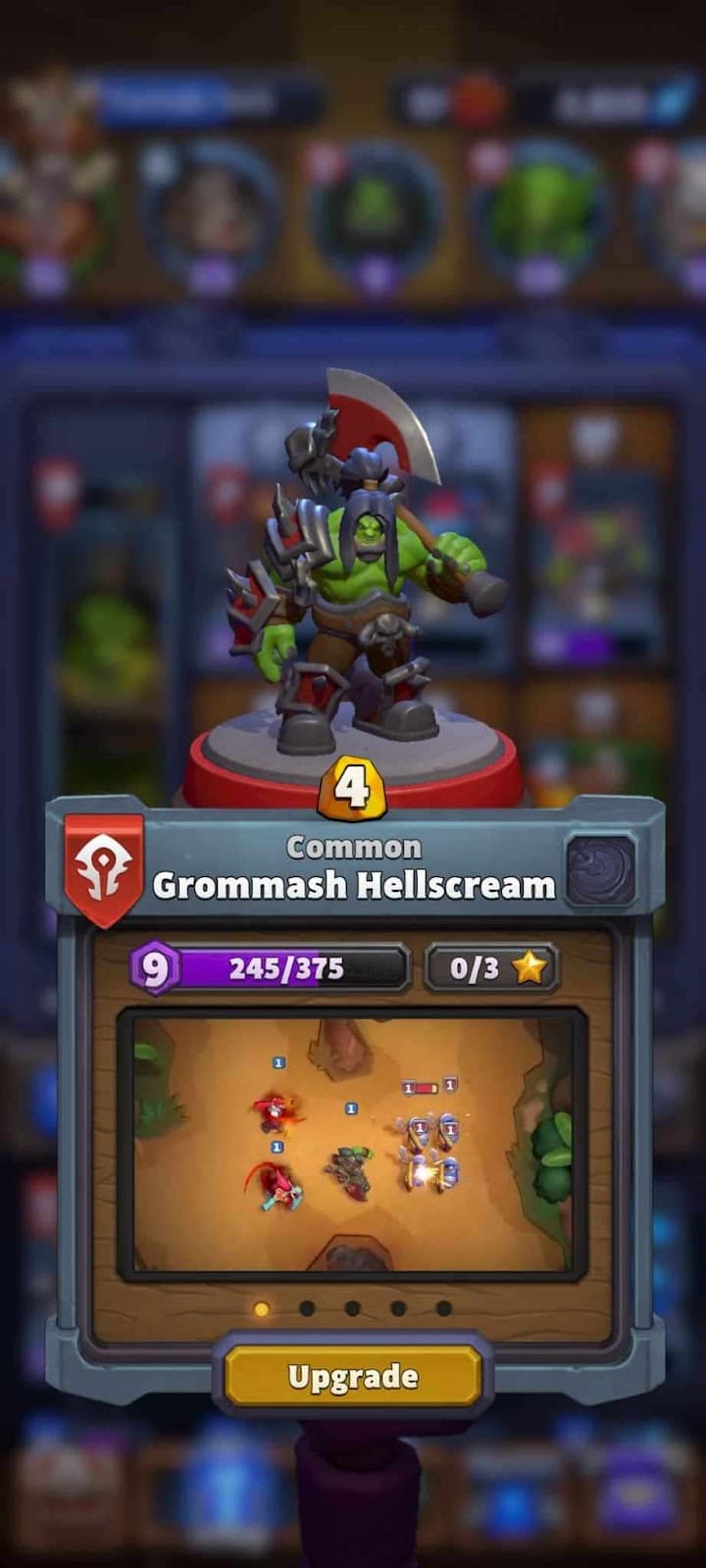 Grommash Hellscream, a commanding figure of immense strength, emerges from the orcish stronghold of Orgrimmar in Warcraft Rumble. As a melee tank with the Bloodlust trait, he embodies the ferocity of the Horde, inspiring allies with his unwavering fighting spirit and enhancing their attacks.
