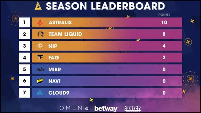 After the first two Blast Pro Series tournaments in São Paulo and Miami, Astralis is currently in the lead with ten points, followed by Team Liquid, NiP, and FaZe Clan.