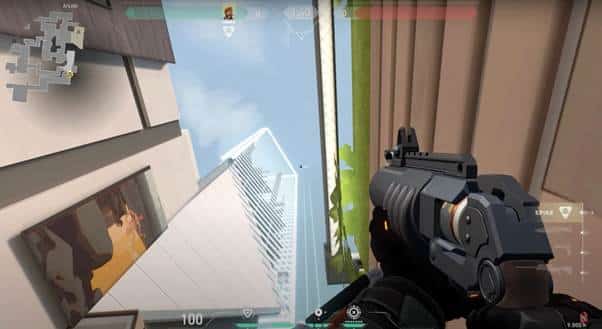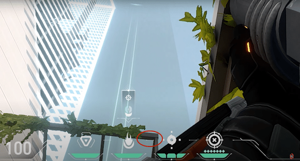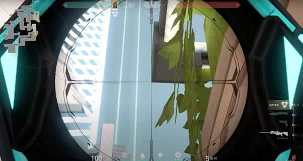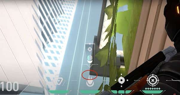 Step 2: Aim your crosshair at the top right side of the big transparent building at the furthest distance.