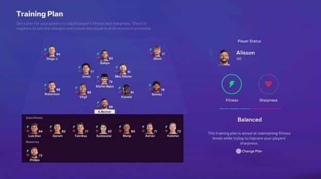 There are five Training Plans available for players to choose from, each with a distinct focus, spanning performance to energy. When players select a plan, it communicates to the club staff the specific aspect that requires attention for that player.