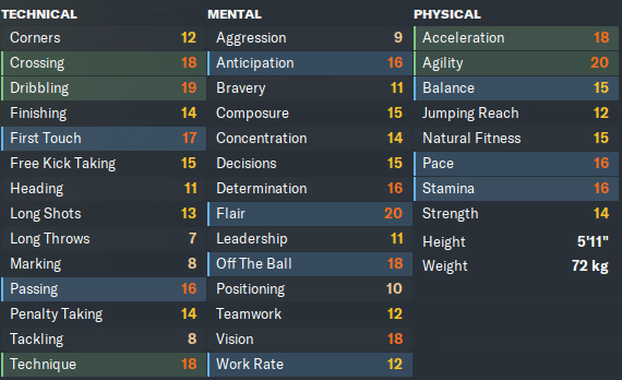 As for his roles, he can play central or on the wings, but it’s out wide that we see the best out of him. FM24 has a lot of very strong left sided wingers, and Musiala is probably the best of the lot a few seasons in. His stamina might be a little low for some that demand a lot from him on defence, but honestly, this man is an attacking machine.