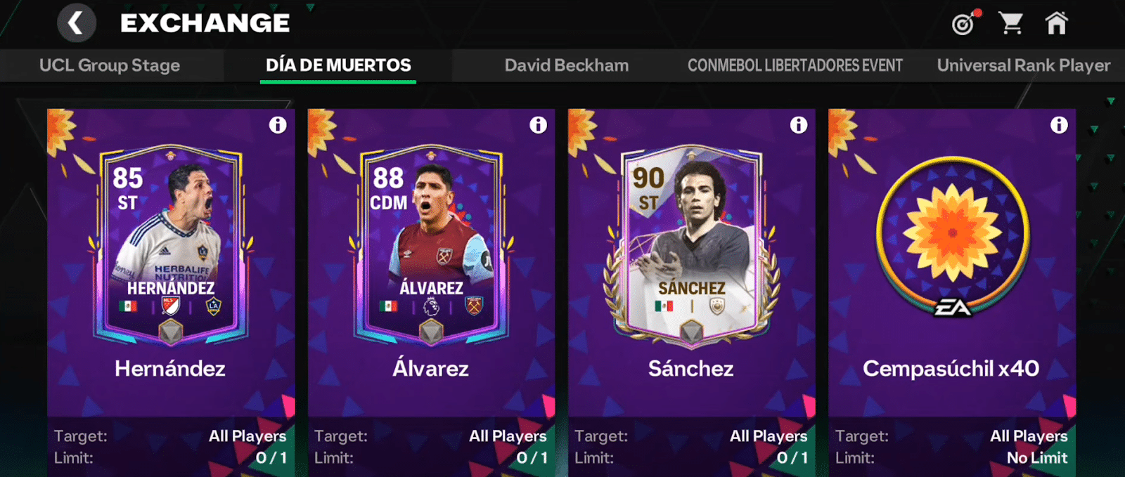The adventure doesn’t end there. Once you’ve amassed a collection of Cempasuchiles and additional players, you can delve into the Exchange feature. Here, you can swap your hard-earned Cempasuchiles and players for exclusive FC Mobile Día de Muertos Players.
