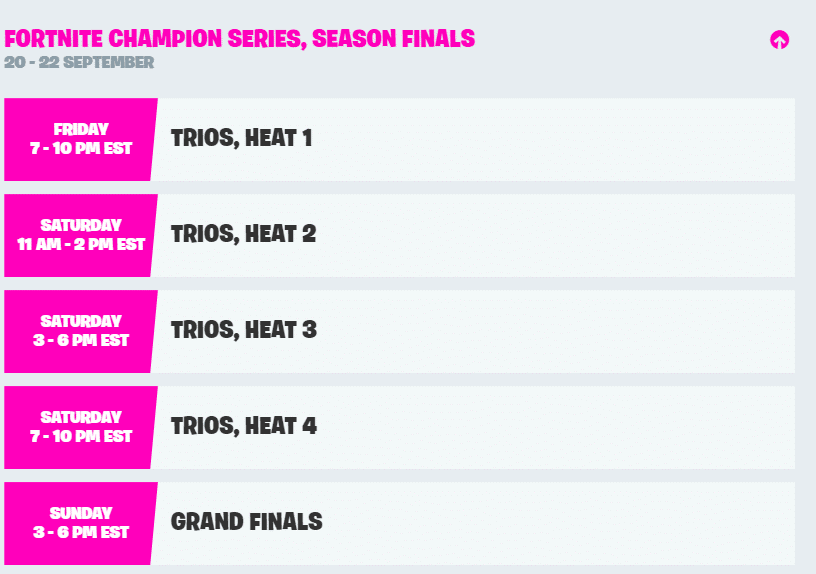 Teams across NA East, NA West, Europe, Brazil, Asia, Oceania and Middle East will compete in a variety of heats beginning at 1 PM this Friday, September 20th. This will all culminate per region in the Grand Finals on Sunday, September 22nd. Participating regions will not combine into one Grand Finals. Each region will crown its own champion at the conclusion of Sunday’s events. Epic Games provided details regarding the exact format that they will follow for this weekend.