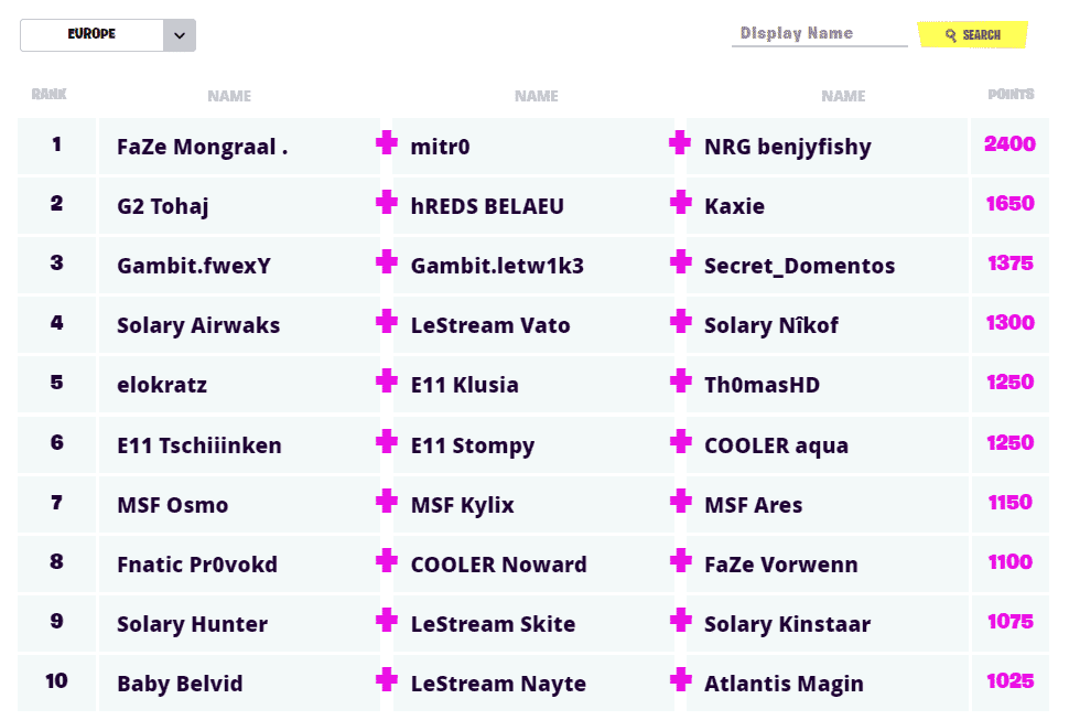 FaZe Mongraal, mitr0 and NRG benjyfishy absolutely decimated all who came into contact with them for the last 5 weeks of competition. There is something special about this trio. No other trio can rival their communication and the way they take high ground and command end game is truly inspirational to watch. Their results speak from themselves with a 2nd, 1st, 2nd, 1st, 2nd and 1st through all qualifiers. The 2400 points compiled over that time safely place them in the top spot as the European FNCS prepares for the finale.