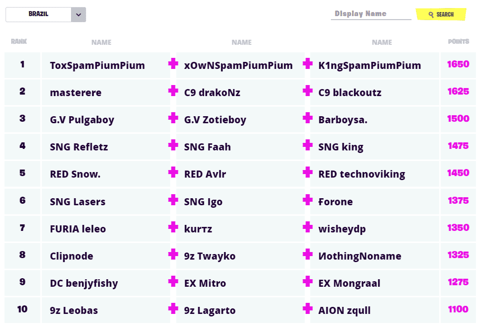 C9 drakoNz, masterere and C9 blackoutz finished the FNCS with the second seed. They ultimately fell short of first place by 25 points and matched the consistency of k1ng, Tox and xOwN throughout the 5 weeks of play. They achieved results of 1st, 13th, 3rd, 3rd and 37th rivaling that of our first-place team. With a region as spread out as Brazil, it is difficult to pick just one trio as the overwhelming favorite.