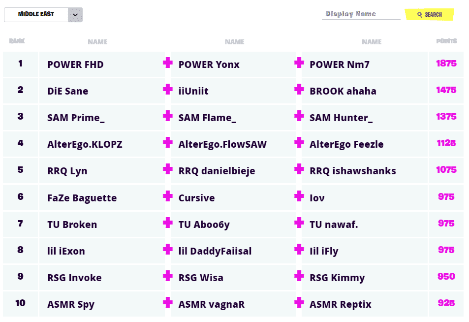 Running away with the FNCS point lead was the team of POWER FHD, POWER Yonx and POWER Nm7. Overall, they finished 400 points ahead of second with results of 4th, 3rd, 5th, 6th and 7th. Although they did not earn a win, consistency is king during the FNCS qualifiers. This trio is in the mix of many other top Middle East teams vying for victory.