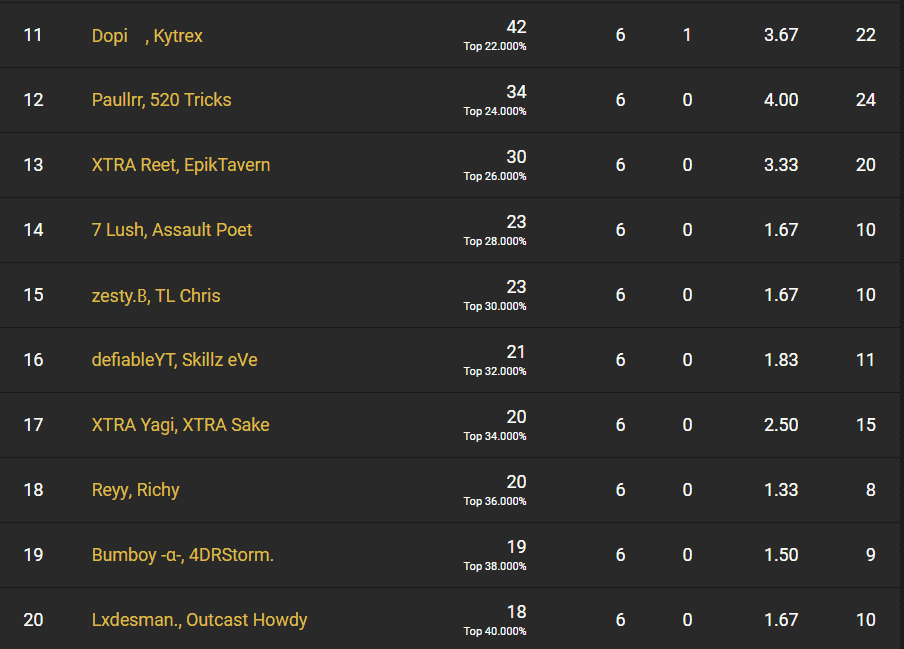 Thomuss and wavyjacob achieved a second-place finish this week, after taking third last week. The controller duo managed 53 points, mirroring first and third place, and put up 23 eliminations in total. Ghost Aydan and duo partner such crept up the leaderboard and finished in sixth place. The top 20 teams in NA West are now moving on to heats, and there are some notable names part of that group.