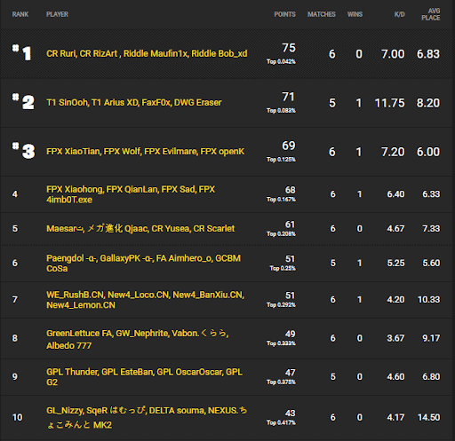 CR Ruri, CR Rizart, Riddle Maufin1x, and Riddle Bob took down the FNCS Warmup in the Asia region. Although a much lower affair in terms of scoring, the former FNCS Season X winners achieved their first significant squads victory with the assistance of Bob. Ruri, Rizart, Maufin1x and Bob set themselves apart from the other teams in the Asia region with earning a Victory Royale. This feat is difficult to sustain, but clearly this squad’s consistent top-10 finishes helped elevate them above T1 SinOh’s squad. Our first place finishers have a lot of expectations to maintain in the coming weeks.