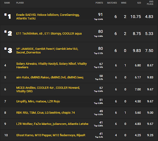 It is worth noting that, even with NRG Edgey losing his internet connection, their 58 points still led to a top-5 finish. One of the notable teams absent from the finals is 100T Ceice’s squad. This may not be an accurate depiction of what to expect in the NA West, but the performance out of our winners is something to keep in mind for this region.