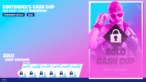 The prize pools vary, but all of these weekly competitions take a piece of the initial $5M USD prize pool announced for Fortnite Chapter 2. The Platform Cash Cup will take place every Wednesday until December 4th. The Contender’s Cash Cup has also returned with the same format as usual, which will reoccur every Thursday until December 5th.