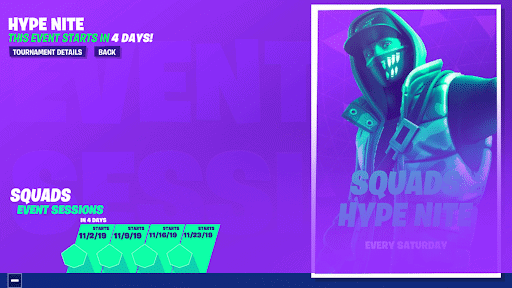 Epic Games introduced a Squads Hype Nite in addition to the Friday Nite Fortnite. The reward for these tournaments is “hype,” which allows helps vault players into higher divisions in the Squads Arena playlist. Increased hype will ultimately allow players outside of the Champion’s Division to be eligible for the Fortnite Champion Series. Squads can queue up for the Hype Nite tournaments beginning on Saturday, November 2nd, and it will end on Saturday, November 23rd.