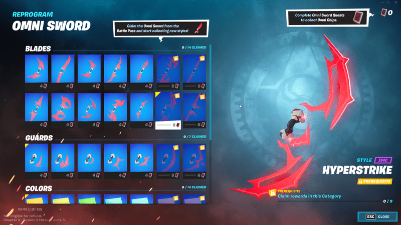 Epic’s list of offerings does not conclude with page 10. Players can customize their own Omni Sword Pickaxe by completing Omni Blade Quests and collecting Omni Chips. This harvesting tool is fully customizable down to the color and sound.
