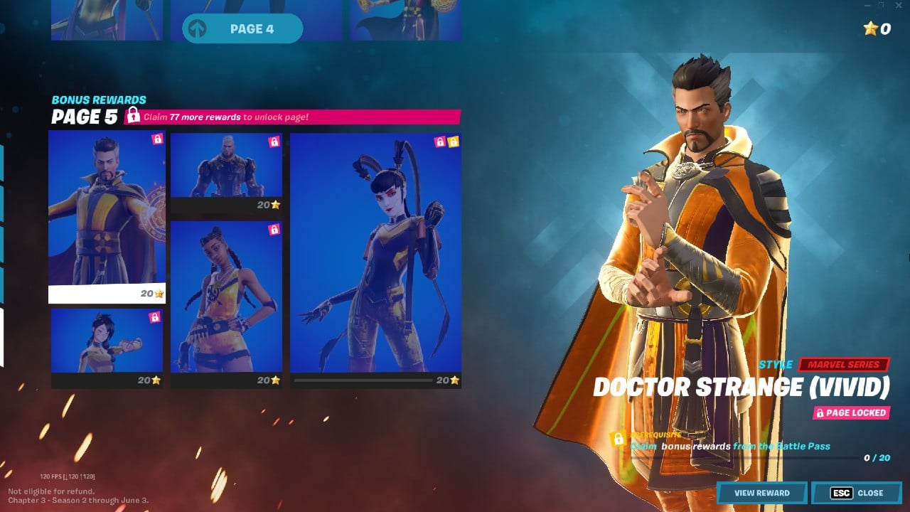 Like past seasons, Epic Games featured 15 different skin styles beyond Battle Pass level 100. To unlock all 15, you’ll first need to reach level 100 and collect every reward up to that point. Once that’s done, your next goal is to complete pages one and two of the Bonus Rewards section—there are ten cosmetics with varying Battle Star requirements.