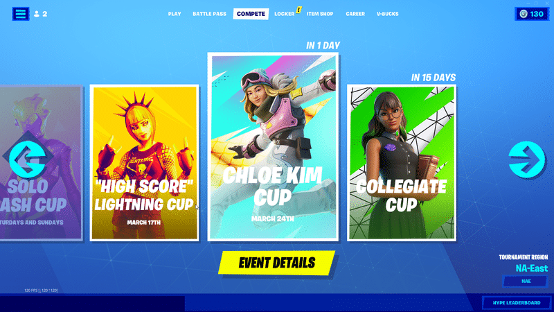 Those looking to compete in the Chloe Kim Cup should have 2FA applied to their Epic Games account and have reached account level 50 or higher. You must meet those two prerequisites to qualify. Once that’s done, wait for your tournament’s time to arrive. You can find that information by navigating to Fortnite’s in-game “Compete” tab.