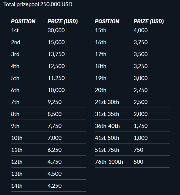 The Grand Final will provide a stage for the top 100 participants from Stage Two. We will see the top 100 competing in 8 matches to decide the DreamHack Winter Fortnite Champion. The top point earner will take home $30K USD in the Grand Final.