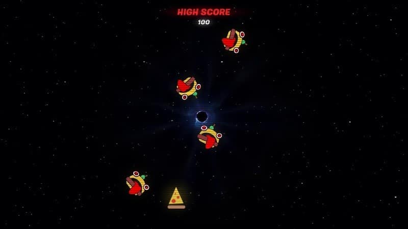 Players soon discovered a minigame within the black hole screen. The minigame will activate upon entering the Konami Code. On most consoles, it is Up, Up, Down, Down, Left, Right, Left, Right, B and A in sequence. The minigame is simply a classic fixed shooter arcade-style game similar to Galaga. It allows players to control a slice of pizza and shoot hamburgers as players eagerly await what will come next after the black hole.