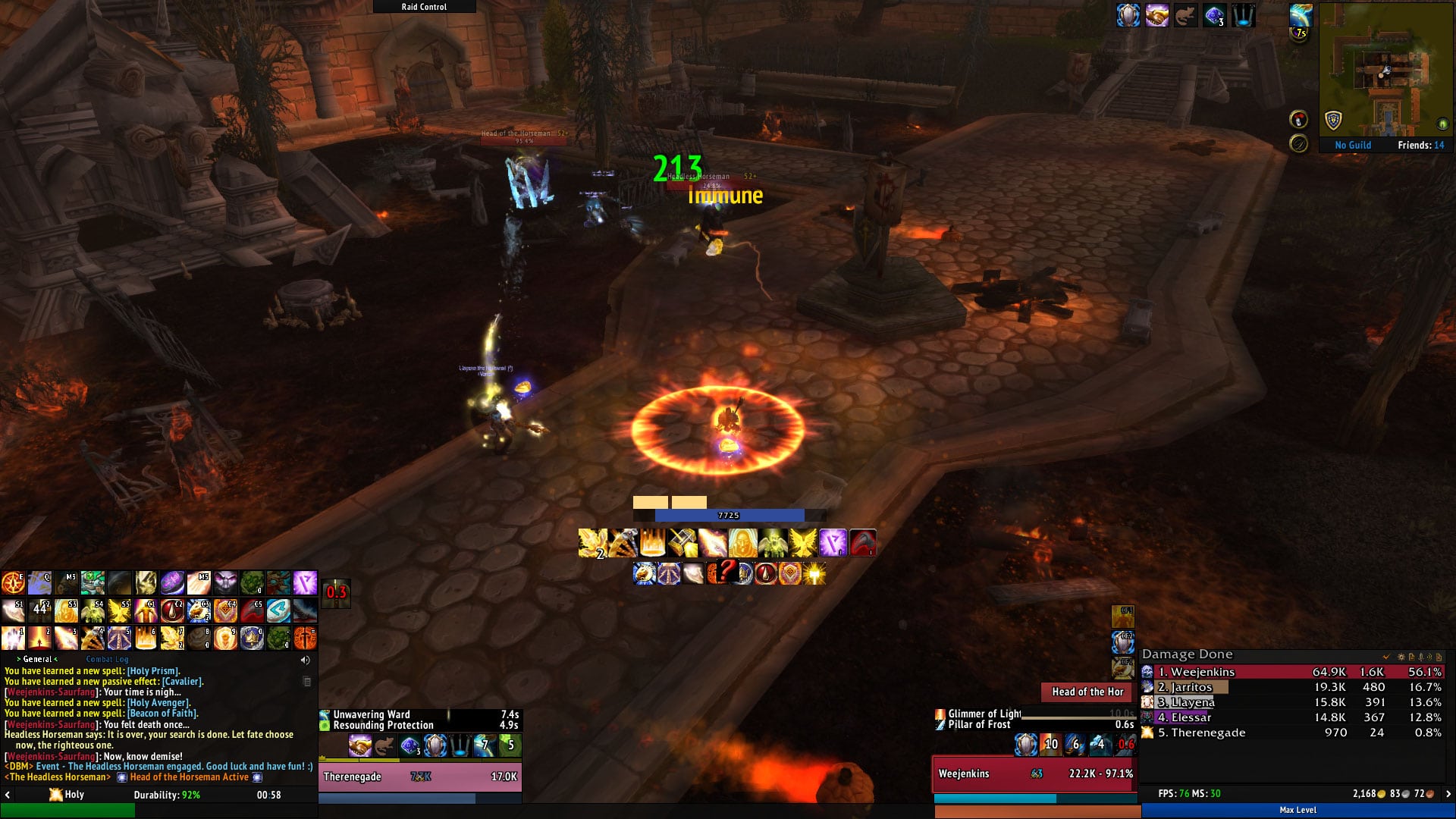 The encounter is a pretty simple two-phase fight which repeats three times. You’ll need to kill the Horseman, at which point his head will fly off and you’ll need to kill a number of adds that spawn in the area. Do that three times and he’ll die for good.