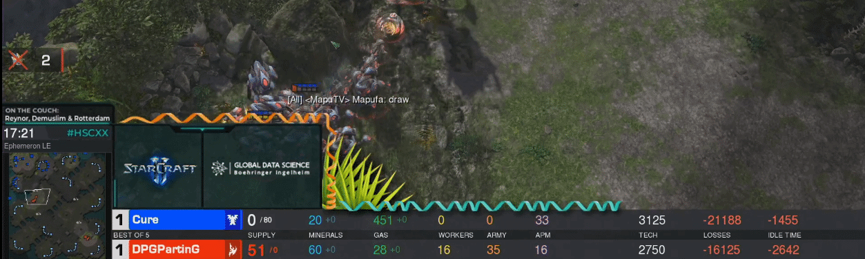 In a stunning match, Cure and PartinG managed to create the first tie of the tournament to the shock of everyone, both being unable to destroy the other’s base at the end of game 3 after both ran out of resources. Game 4 would start with the score unchanged at 1-1.