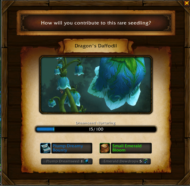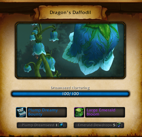 - Gigantic Dreamseed – Rewarded from Emerald Bounty Events (large trade goods reward) – major quests – Major Bloom event