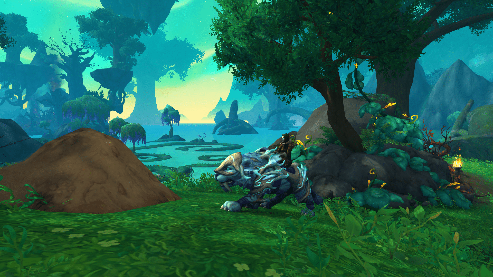 You’ll find Emerald Dewdrops in the surrounding areas, from pulling up weeds (shown above) to killing local hostile flowers (shown on the left of the above picture) or stepping on the bugs (shown right). The rewards from these are the Small Emerald Bloom, Medium Emerald Bloom, and Large Emerald Bloom. These will offer you rewards; FLightstones, Dream Energy (used for the Dream Infusuions to buy mounts and pets), pets, and a chance at the Winter Night Dreamsaber mount.