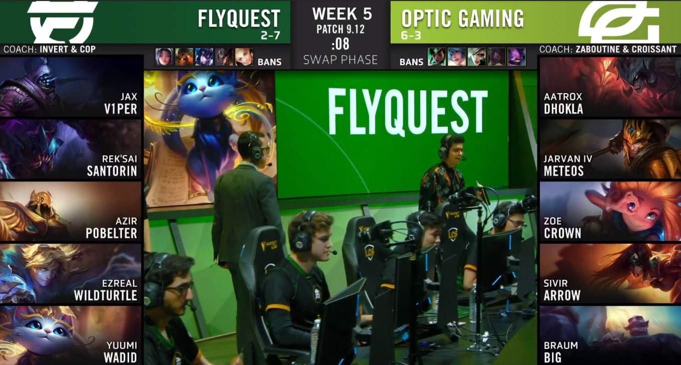 FlyQuest (“FLY”) wrapped up the day with a win against OpTic Gaming (“OPT”). It all started with Pobelter, who had a great game on Azir. He set up Santorin for First Blood at six minutes and was a huge force in the later fights. The early game was relatively quiet though, as other than that kill there were only neutral objectives killed in the first 15 minutes. But in the mid-game, they turned online and found some big team fight victories. These fights allowed them to destroy some towers and secure more dragons.