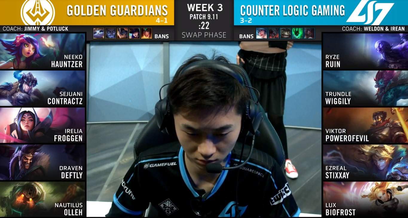 Counter Logic Gaming (“CLG”) wrapped up week two of the LCS with a win over the Golden Guardians (“GGS”). This match was action packed, with constant fighting all over the map in the early-mid game. Wiggly started it all off with First Blood onto Froggen, but GGS caught out Wiggily shortly after. Blood continued to flow all over the map, with roams and ganks gaining both sides kills.