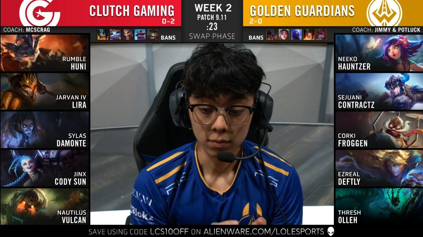 Clutch Gaming closed the day out with a very convincing win over the Golden Guardians. They began their rampage early and never gave GGS a chance to breathe. As early as five minutes Clutch decided to five-man dive the bottom lane, which netted them two kills. Going forward, Clutch dominated the map and secured every single neutral objective. They used the previously taken Rift Herald to take all five plates on the top lane tower and the First Tower bonus. These great rotations from the bottom lane duo and Lira pushed the tempo faster and faster.