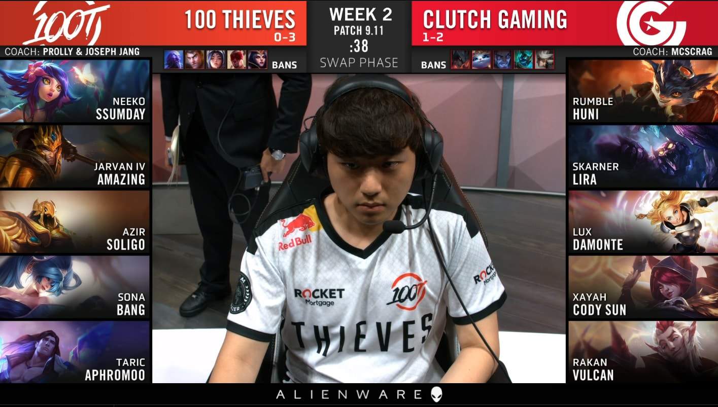 The second game of the day featured an extremely hard fought victory for CG over 100T. With the help of Lira, Huni secured First Blood onto Ssumday in a top lane 2v2. Next, CG dove the bottom lane to secured themselves a kill and the First Tower bonus. They continually pushed the pace of the game by finding winning team fights and picks with the Skarner Impale (R). The CG squad slayed their First Baron at 20 minutes, but the game was no where near over.