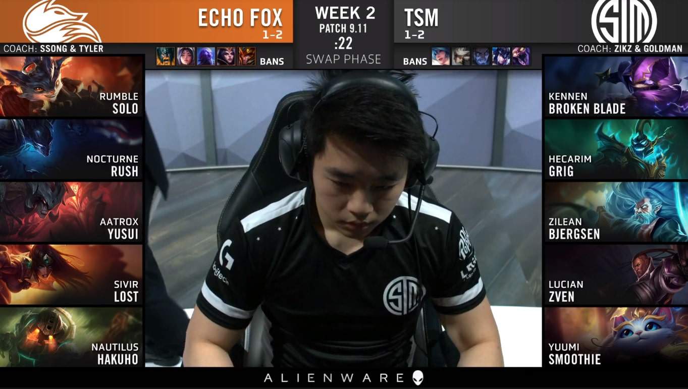 The slug fest continued with a fierce, bloody game three. In the end though, TSM was victorious. The early game was relatively quiet, with First Blood coming out slightly before 10 minutes from Rush, but he traded his life for it. Grig started to ramp up in the early-mid game and found a number of kills, making him a threat. TSM also took the First Tower bonus and three Ocean Dragons. Because of this, TSM had a sizeable lead moving past 20 minutes.