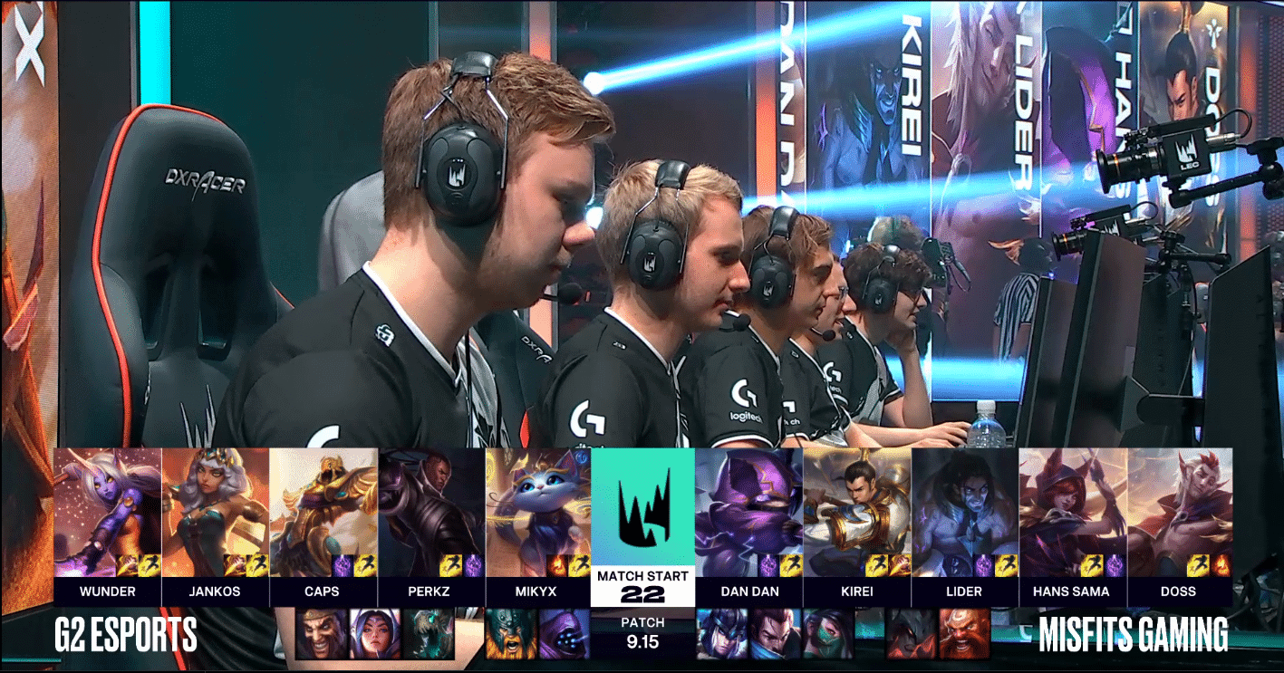 As alluded to by Wunder on Twitter, G2 Esports (“G2”) spiced up their match against Misfits Gaming (“MSF”) by beating them with Smite Soraka top. This pick really didn’t do much though, as their win can be contributed more to their aggressive, skirmish-heavy style. But Kirei made exceptional plays early on to get leads for his laners, getting Lider First Blood, two kills for the MSF bottom duo and even one for Dan Dan. The MSF duo also killed Perkz in the 2v2, but once the teams hit the mid-game, G2 flipped a switch.