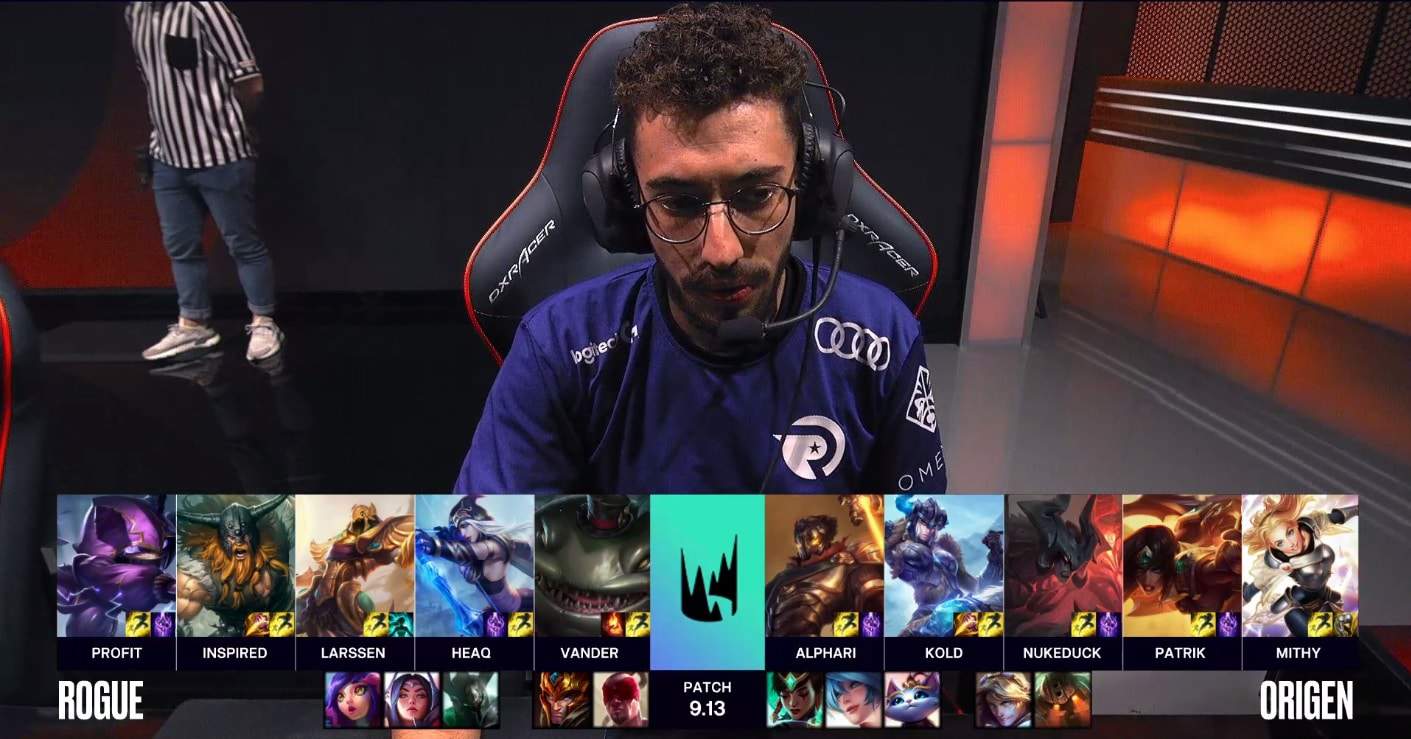 In a surprisingly clean fashion, Rogue (“RGE”) pulled off a major upset over Origen (“OG”). Inspired was a huge factor in their win, as he got First Blood for Profit in the top lane and snowballed his lead all over the map. RGE constantly attacked Nukeduck in the mid lane, where they killed him multiple times. Next, RGE used the Herald to take the First Tower bonus and after that continued to find picks on other OG members. OG was being dismantled by RGE and seemed to have no response.
