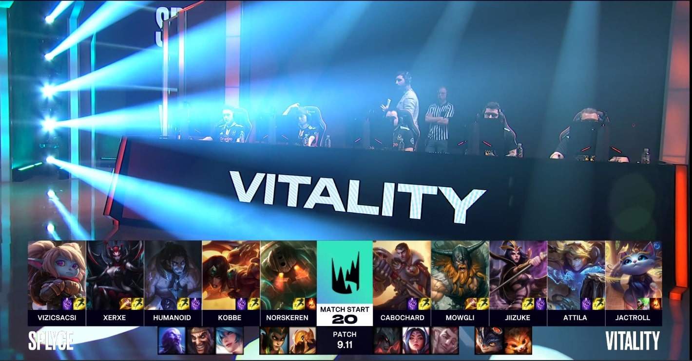 Splyce, despite a rough early game, played an exceptional mid-game to snag a victory over Vitality. There was a ton of action in every lane early on, with multiple ganks from both junglers in the bottom lane and solo kills from Cabochard and Humanoid on their counterparts. Approaching the mid game, Vitality had a huge advantage in the top lane, while Splyce’s bottom and middle lanes were quite ahead.