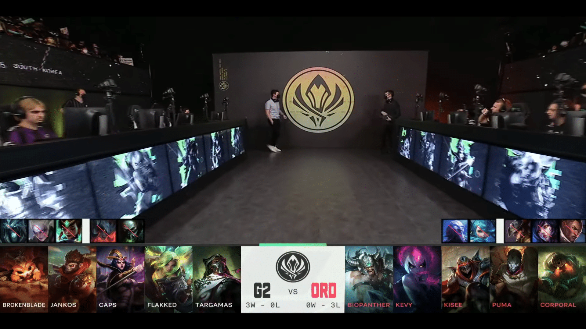 First blood went to G2, with Jankos’ Wukong killing off Kevy’s Evelynn. G2 went on to take both buffs from ORDER. With a lot of the early game taking place in the jungle, G2 secured a solid 4k gold advantage and steamrolled through two top towers by minute 12. With G2 staying grouped up and a heavy focus on Evelynn, ORDER found it difficult to gain an opening. The Oceanic underdogs tried to scrape what they could through kills and turrets, but the gold advantage on G2 proved too great. G2 secured the Nexus at minute 24, making this the 16th win in a row for the European titans.