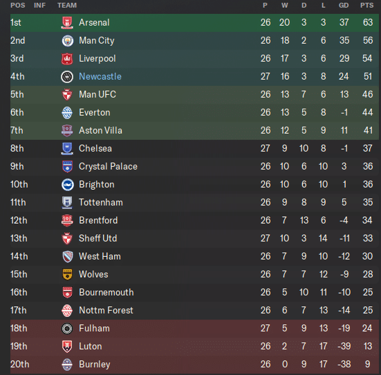 For now, the aim is to stay in the top 4 spots (though I think the top 5 might actually get us Champions League football), while looking to push on in Europe and try to win the FA Cup. With our current squad, and the form we’re in, I think we can make a real challenge for the top.