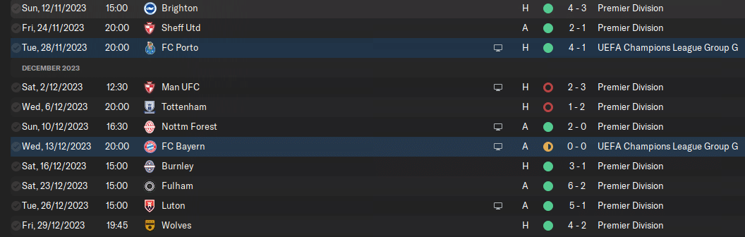 So, apart from two frustrating games in the middle, things have really turned out well for us here. Not only are we now in the top 6 in the Premier League, but we’re going to finish top of our Champions League Group, which is about a season ahead of our club objective. But things are looking good as we head into January, and with a few signings coming in, the sky might be the limit for this season.