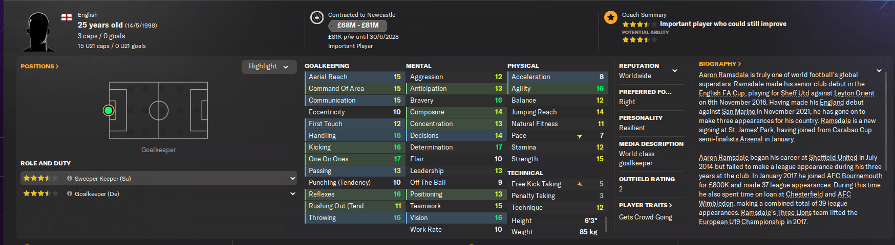 We needed a replacement for Pope in a few years and with Ramsdale being offered up by Arsenal at such a small fee, it was a no-brainer. With only £15m being paid upfront, it was the cheery on top. We’ll still use Pope in the Premier League but likely rotate Ramsdale into the squad for cup matches, that should keep the pair of them happy, as we slowly phase Pope out of the starting 11 in the years to come.