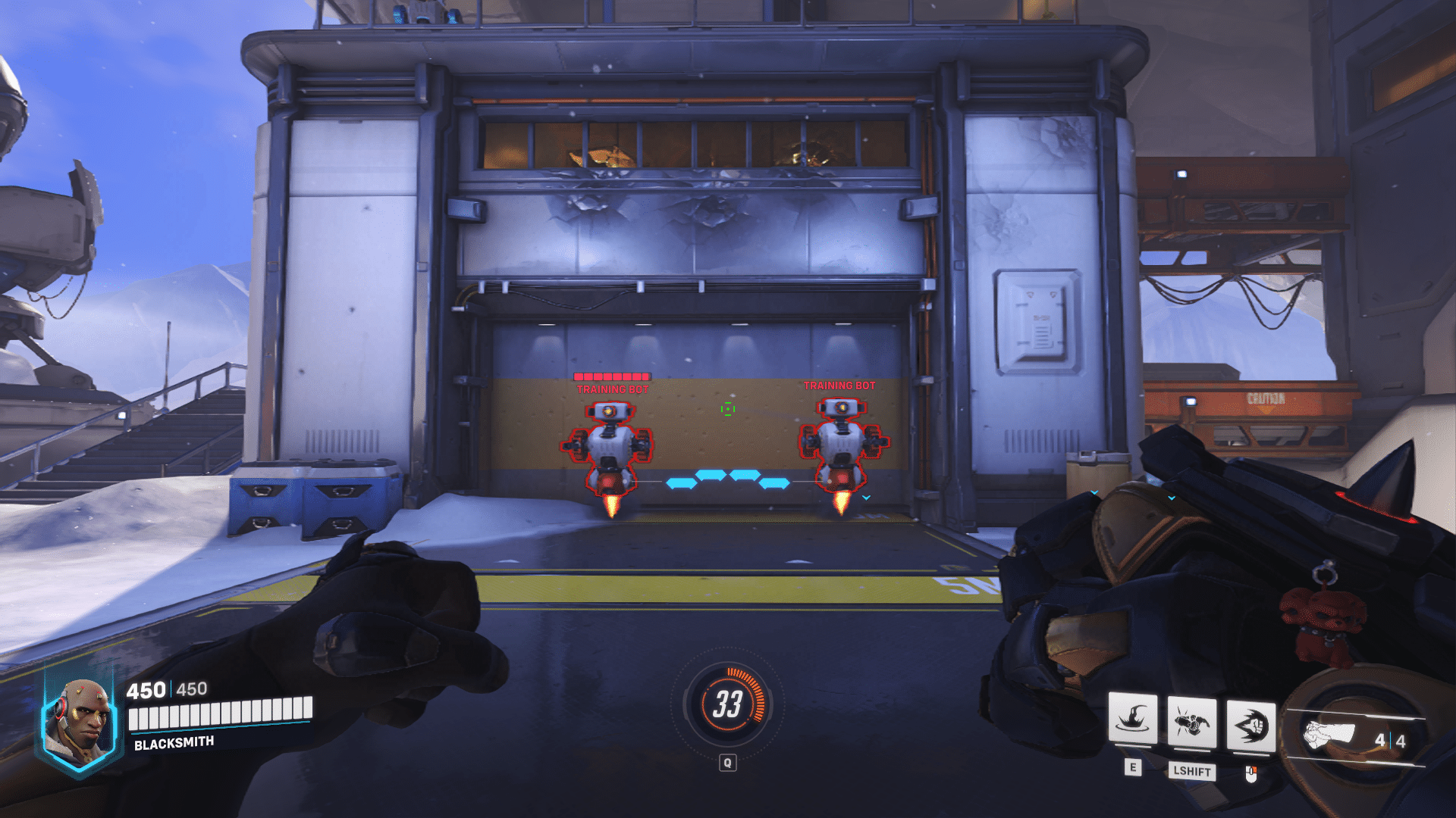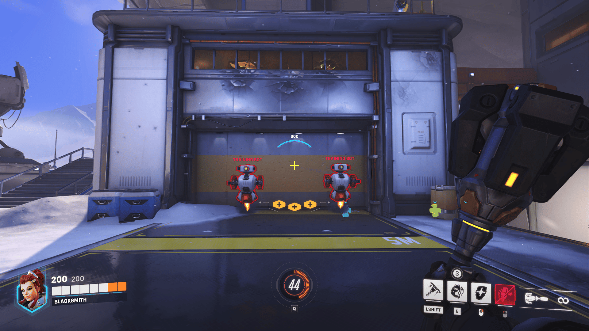Another great target guide for a hero who specializes in aerial combat. Pharah’s rockets travel slowly, which means that you’ll need a cool way to direct each missile, while also keeping track of where the blast radius is.
