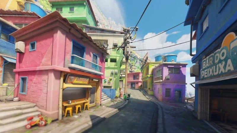 Heavily dotted with references to Lucio’s background, Paraíso’s map is one of a kind. In the new Overwatch 2 map, attackers make their way up from a scenic roadside beach and capture a green parade float. They then escort it through Rio de Janeiro’s incredibly colorful residential district until they arrive at Lucio’s nightclub. As opposed to Paraiso’s airy aesthetic, nightclub places heroes in immediate vicinity. Much like Dorado’s last checkpoint, melee brawl comps are essential to push through the bottleneck.