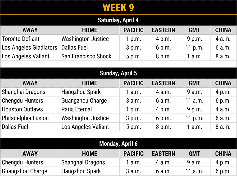 The Overwatch League delays this weekend’s games by 24 hours, as China issues a national observance on April 4.