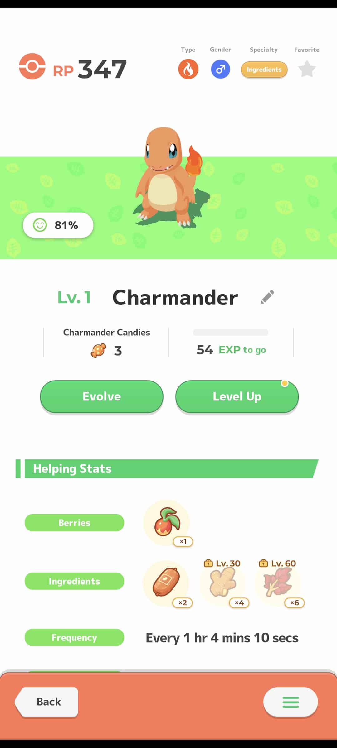 But you’ll also have to consider their Frequency of Help stats, make sure to check them to figure out an optimal gathering schedule. Their Nature, Speciality, and Energy Level will also affect the amount of resources gathered by your Pokemon Helpers.