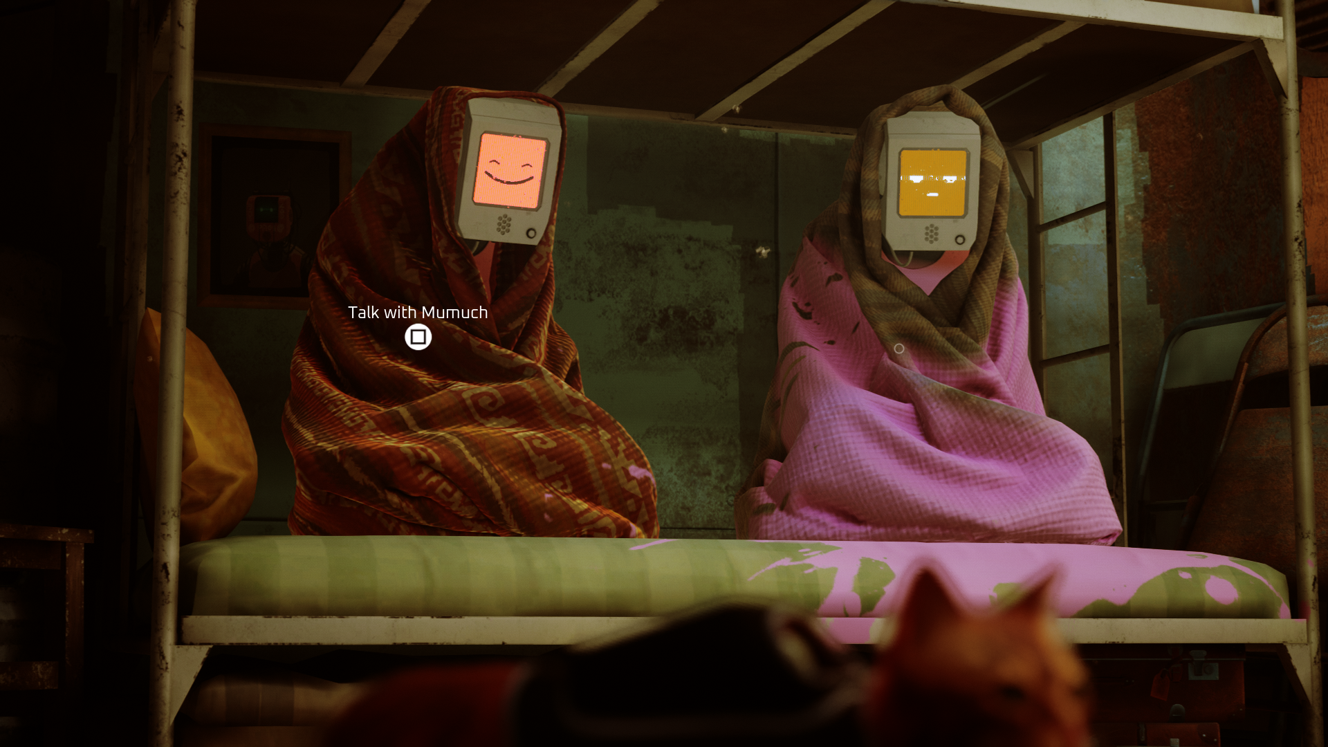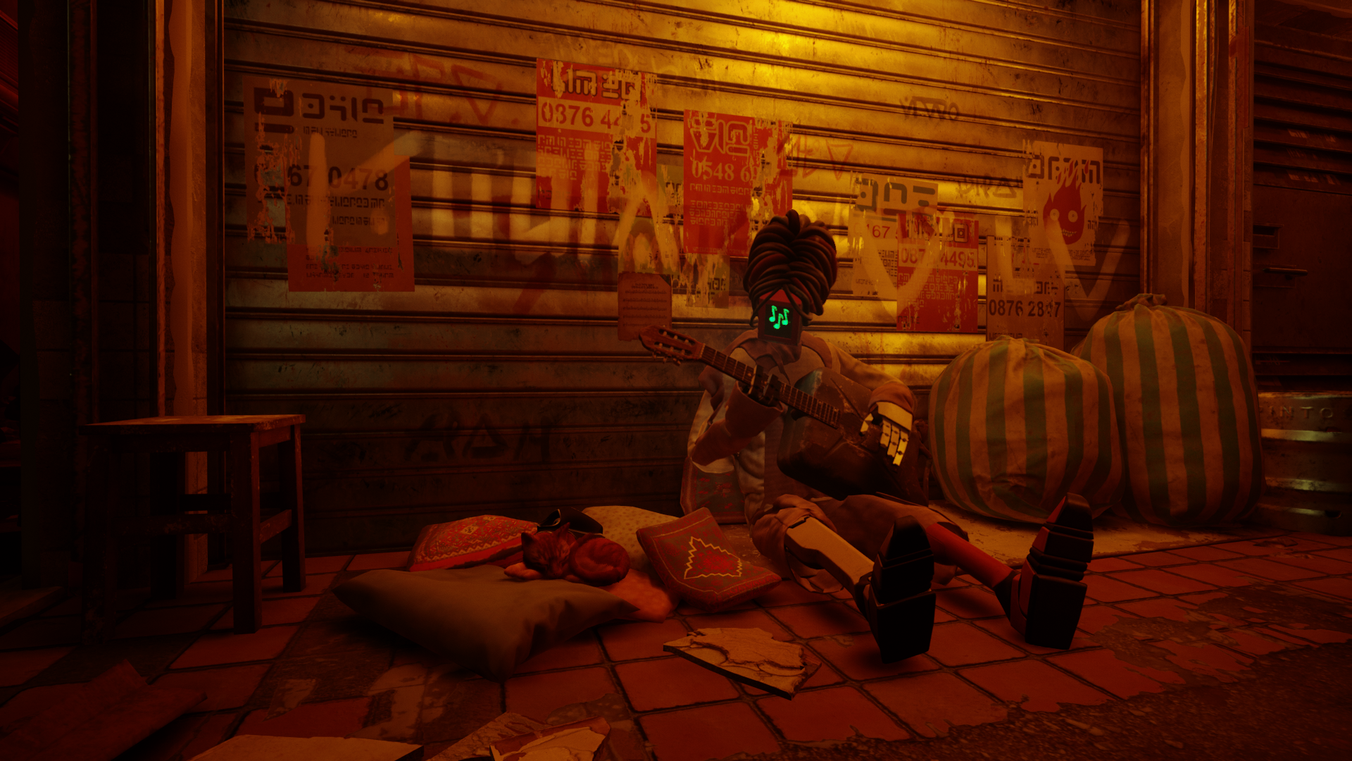 That particular thing clicked with me when I found a door in the slums that I could scratch on. Of course, being the gamer that I am, I did scratch everything in hope of some reward. After scratching the door, a robot opened it. And after a while, he closed the door again. Took a little more than I’m willing to admit to puzzle that one out. But you scratch on the door till some unsuspecting robot opens it, looking for customers that aren’t there.. and then you just scoot past his legs to get inside. It was a small moment, I admit but this is the kind of problem-solving you get up to in Stray.