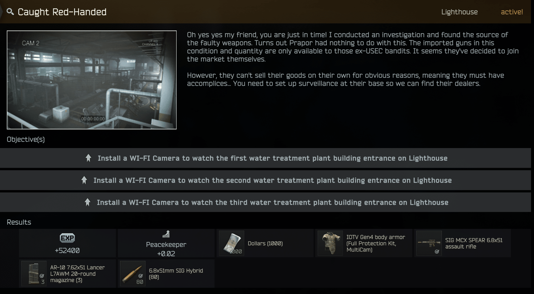 Quest 3 is Caught Red-Handed, which will see you place camera on Lighthouse for Peacekeeper.