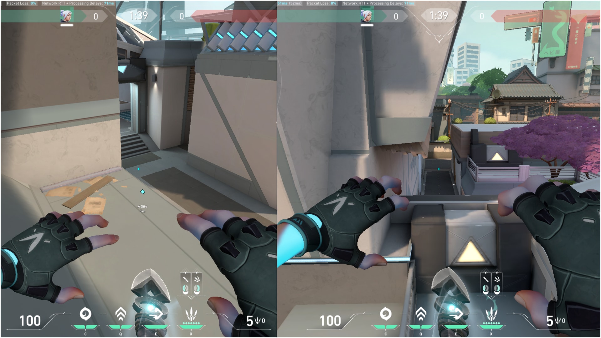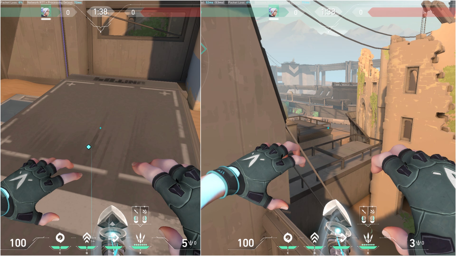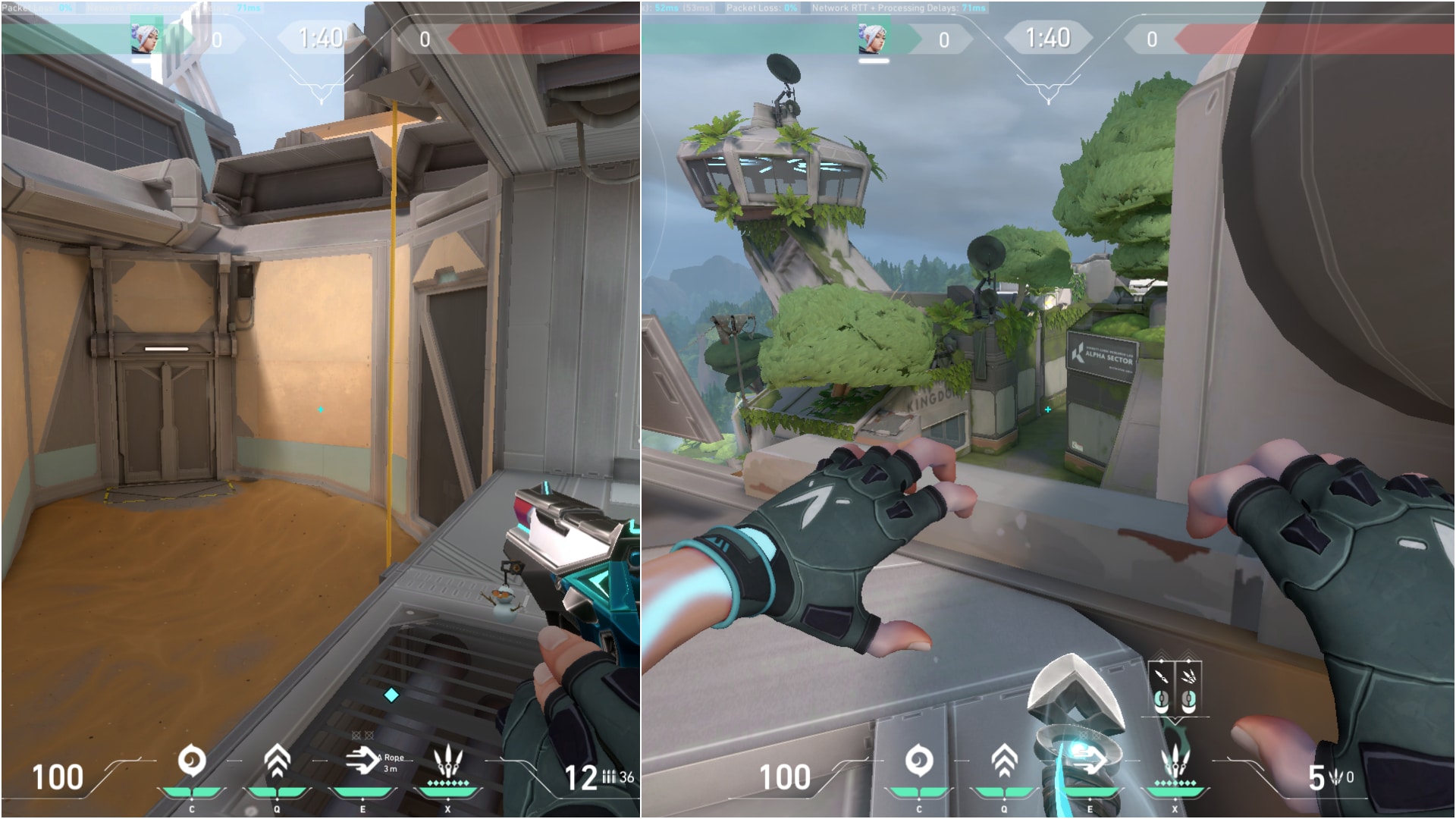 On the Attack side on Ascent, position yourself at A-main like in the image above. Once atop, execute two consecutive Updrafts while maintaining forward momentum. Doing so gives you a comprehensive view of the entire back-site area, encompassing both Heaven and Hell positions.