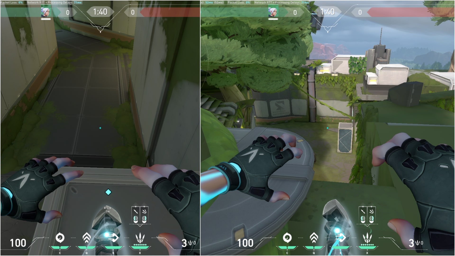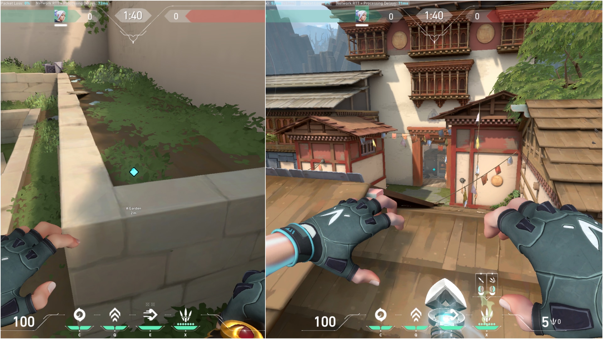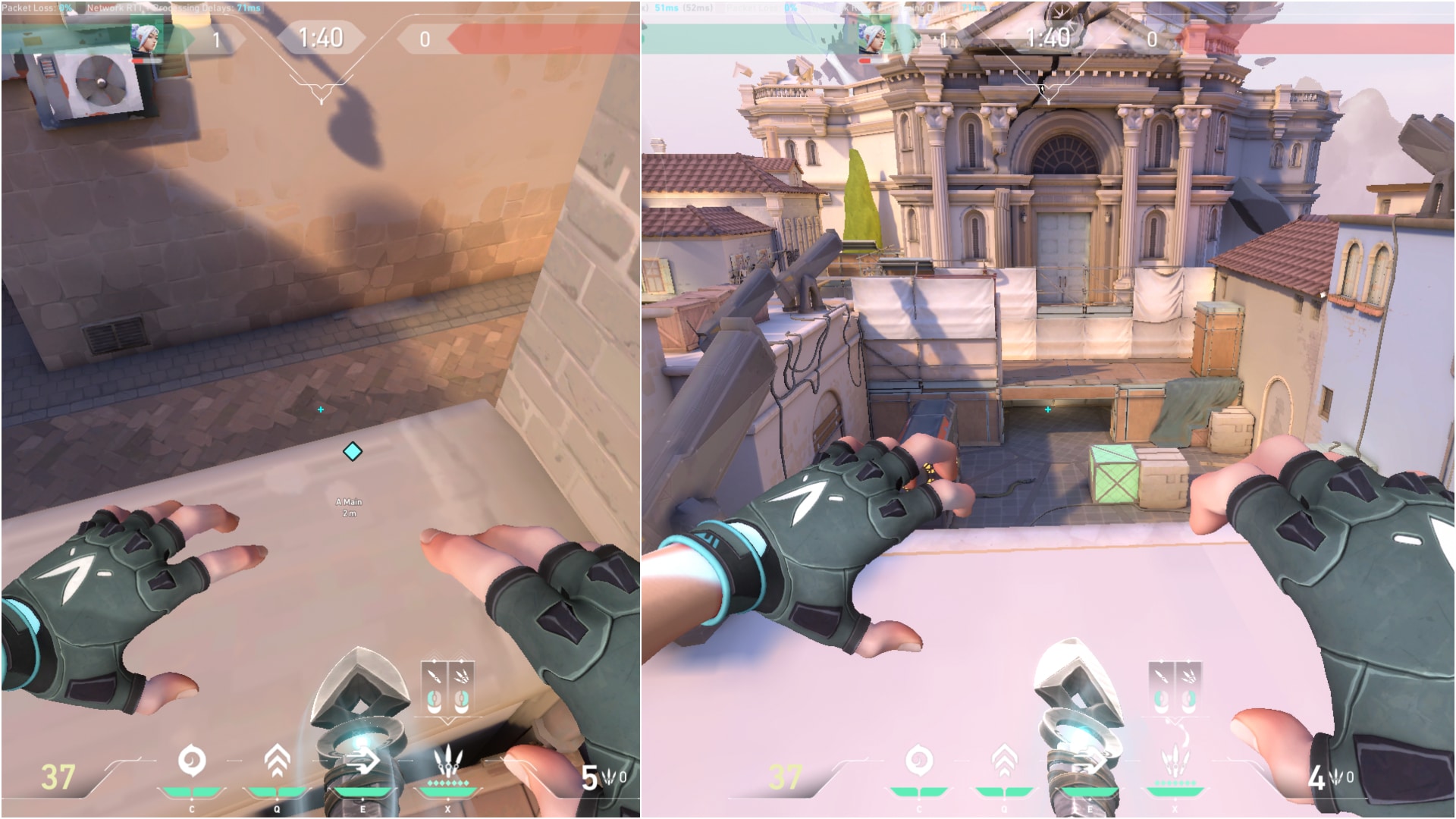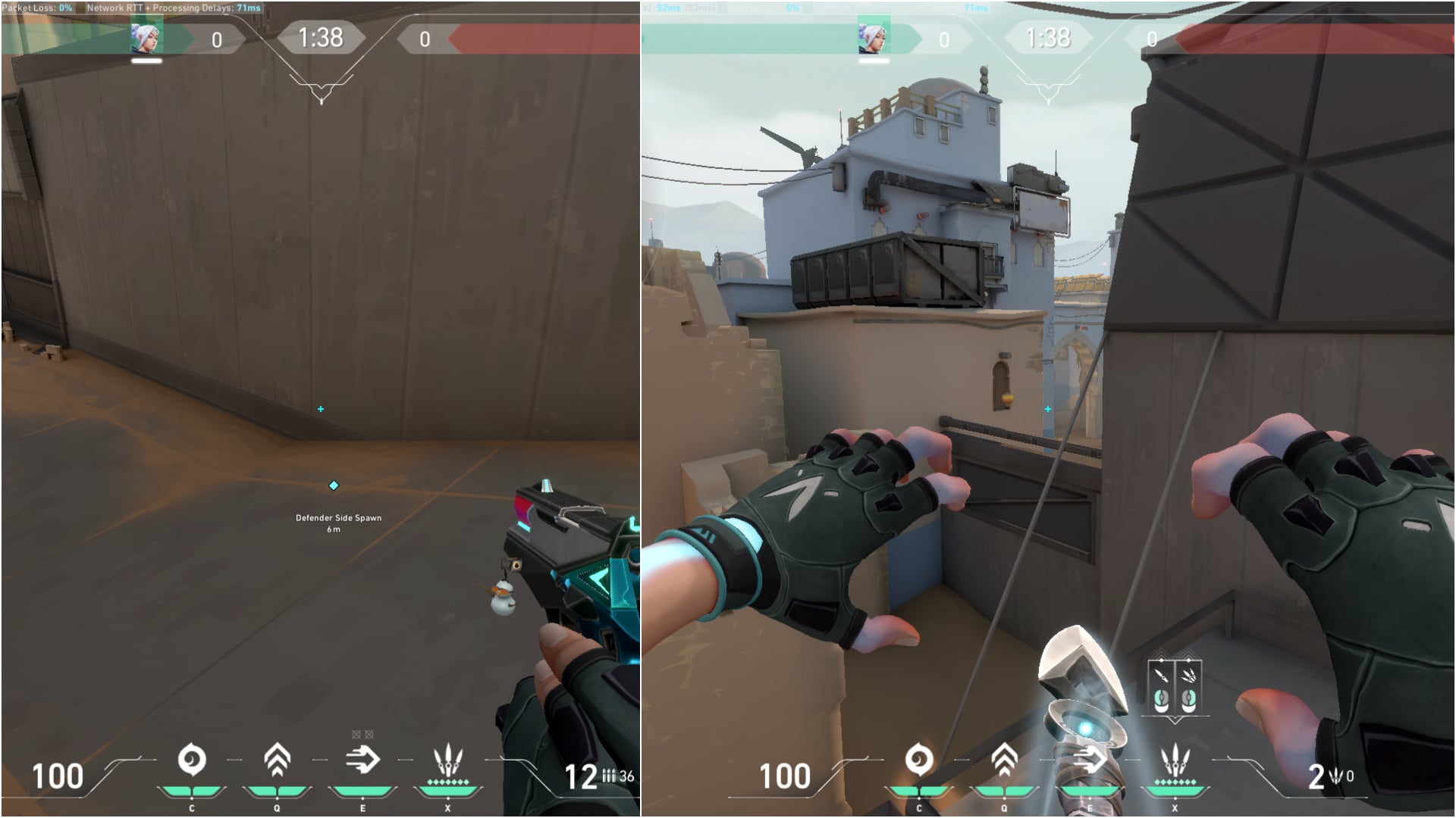 On the Attack side on Ascent, position yourself at A-main like in the image above. Once atop, execute two consecutive Updrafts while maintaining forward momentum. Doing so gives you a comprehensive view of the entire back-site area, encompassing both Heaven and Hell positions.